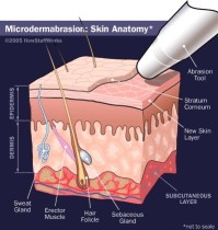 An effective treatment for resurfacing the skin to reduce or eliminate fine lines, wrinkles, age spots, uneven pigmentation, acne, acne scars, whiteheads, blackheads, to repair dull congested or thickened skin, sallow complexion, course uneven bumpy skin and to minimize large pores. A further benefit of microdermabrasion which means removing dead skin (stratum corneum of the epidermis) is enhanced skin penetration by skin creams and serums by up to 50%. Since human skin typically regenerates at approximately 30 day intervals, optimum results are obtained with repeated treatments at intervals of 21-28 days for a maximum of 4 to 6 treatments. The treatments in combination with sunscreen, sun avoidance, and the recommended skin care creams yield best results.